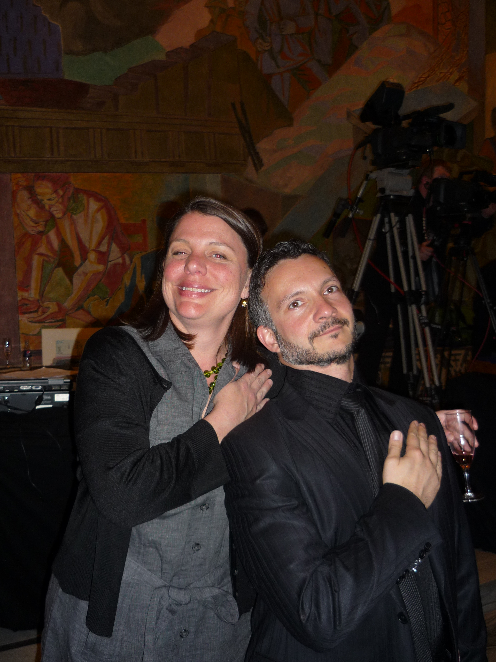 As the Euovision anthem Te Deum was played to the invited guests, Karen and fellow Eurovision scholar Dr. Irving Wolther take their pledge of Eurovision allegiance…