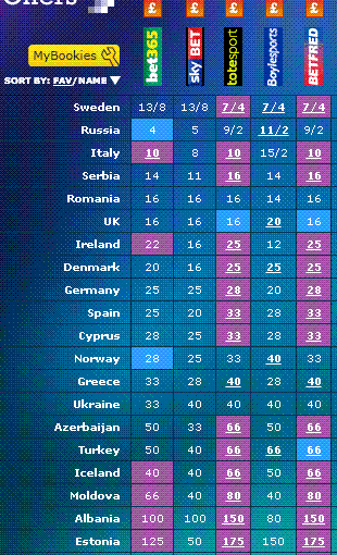 And for those of you with your eye on the betting odds, the top 20 is now thus: