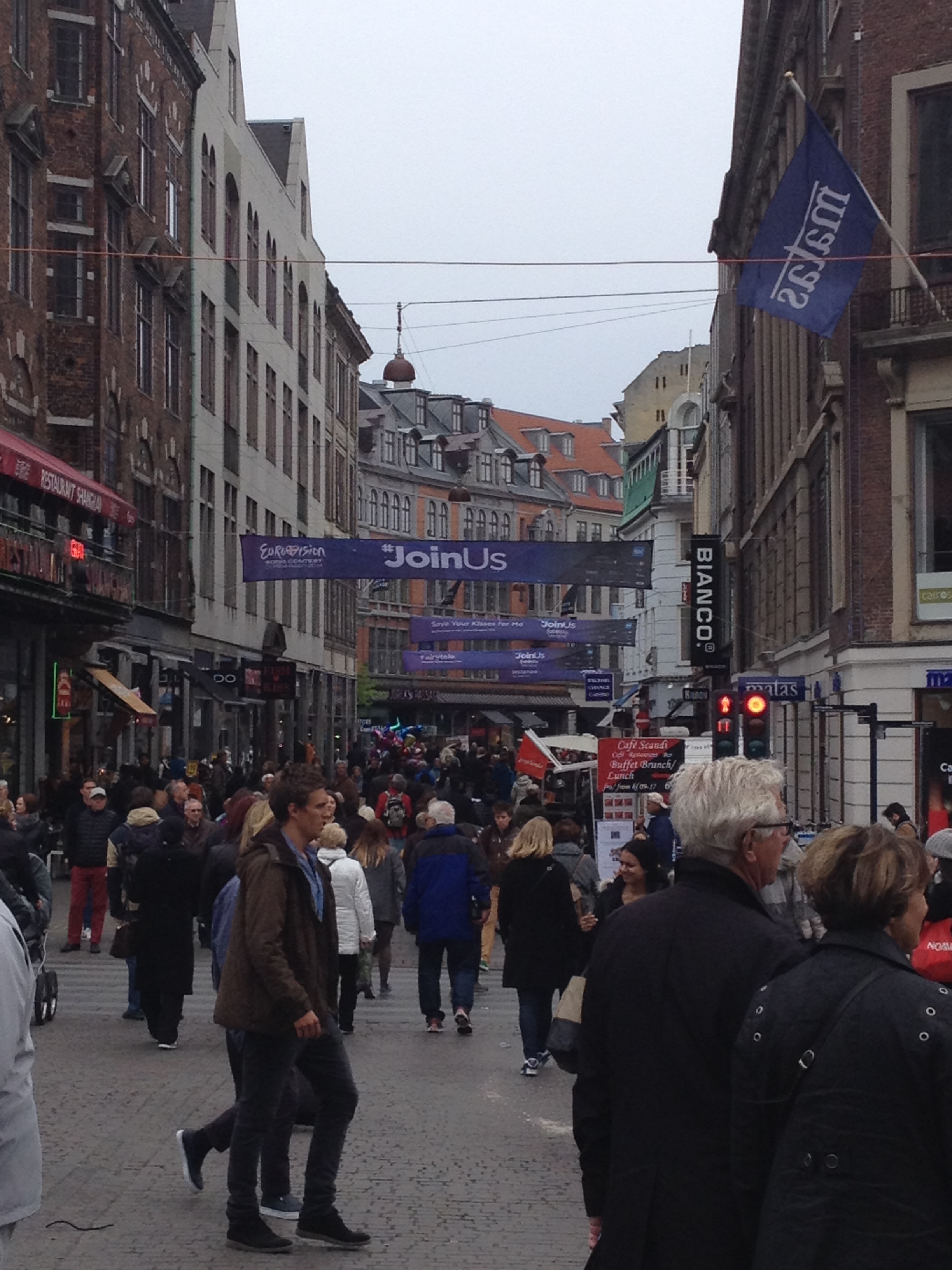 There is a gentle buzz around this area, also known this week as the ‘Eurovision Village’, and there is a noticeable international crowd building ahead of the semi-final tonight. Earlier today (Tuesday) Brian and I went to the first open rehearsals for the ‘Big 5’ (UK, Germany, France, Italy, Spain) and host country Denmark.