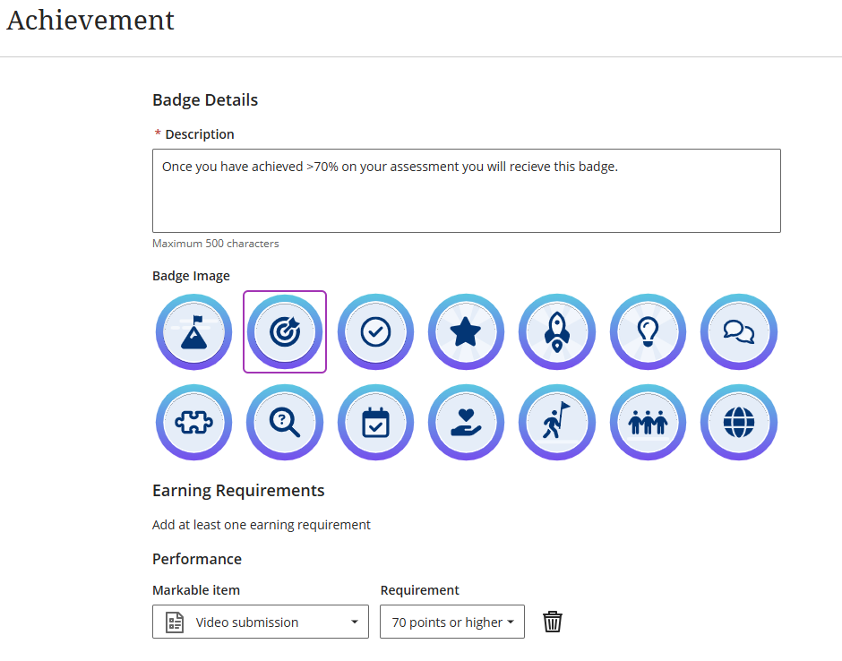 Extrinsic motivators can be a powerful tool for encouraging students to progress in your courses. You can use Achievements to keep students motivated and congratulate them for how they’ve participated in your course.