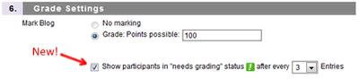 Just before the New Year we introduced a number of new features to Learning Edge when we updated Blackboard Learn 9.1 to Service Pack 7, including enhancements to the Grade Centre, Interactive Rubrics and Timed Assessments. A student Blog now, for instance, might be set to only appear in ‘Needs Grading’ status after a student has made three posts, rather than with each individual post.
