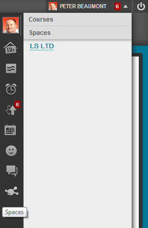 If you open the Global Navigation menu in Blackboard, you will see that the bottom icon on the menu links to a tool called Spaces.