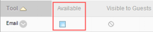 Within the Tool Availability list scroll down and find Email.Put a tick in the Available check box (first check box).
