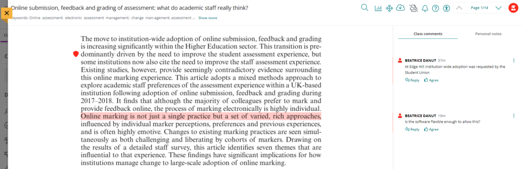 Talis Elevate is a tool for collaboratively annotating learning resources, including PDF documents, images and videos. It can be used within Blackboard Ultra course areas.