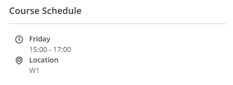For very basic course timetables it is possible to put time, date, and location of sessions in the Course Schedule feature. The Course Schedule Feature in Blackboard (1:23) shows how this works. Note that this doesn’t take ‘reading weeks’/weeks-off into consideration, and will still create Blackboard calendar entries for those weeks.