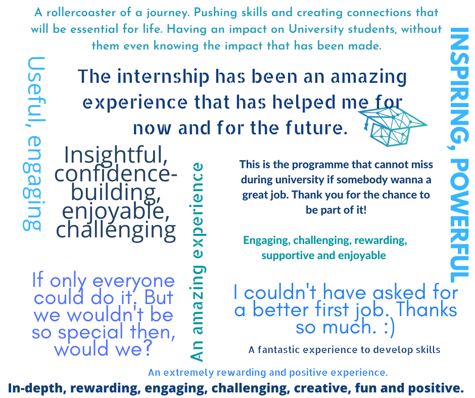 Summary of 2023 interns overall experience in just a few words. We are pleased to confirm that we will have 6 Interns joining us again from 10th June for a period of 10 weeks.