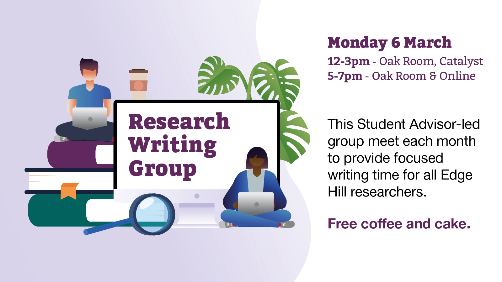 This is where our Student Advisors Elizabeth and David can help. They run a monthly Research Writing Group which provides focussed writing time, to help you get it done.