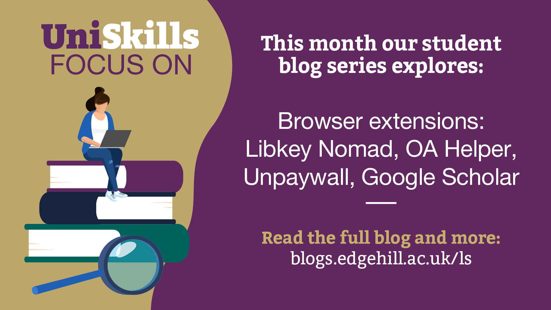 Some of these browser extensions focus on open access links to journal articles and some can be linked up with Edge Hill’s subscriptions. Either way using a browser extension can make it easier to find academic journal articles for your assignments.