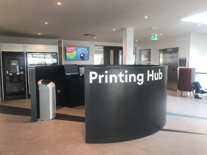 The printing hub for the Silent Study space is located on the third floor right outside the study area, resulting in quick and easy access to printing and scanning any work you may have. There is also a rover phone located here which means you can contact the helpdesk from the third floor if you require any assistance. You just have to pick up the phone and it will automatically connect you through to the helpdesk.