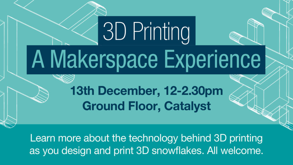 On Thursday 13th December come along to @CatalystEHU 12pm-2:30pm and get involved in our 3D printing technology event. Learn more about 3D printing technology and print your very own 3D snowflake just in time for Christmas ❄️