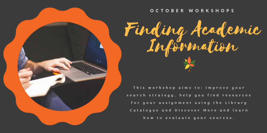 This workshop aims to improve your search strategy, find resources for your assignment (including books, eBooks and journal articles) using the Library Catalogue and Discover More and learn how to evaluate your sources.