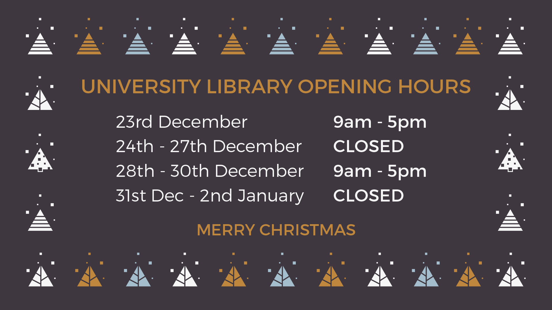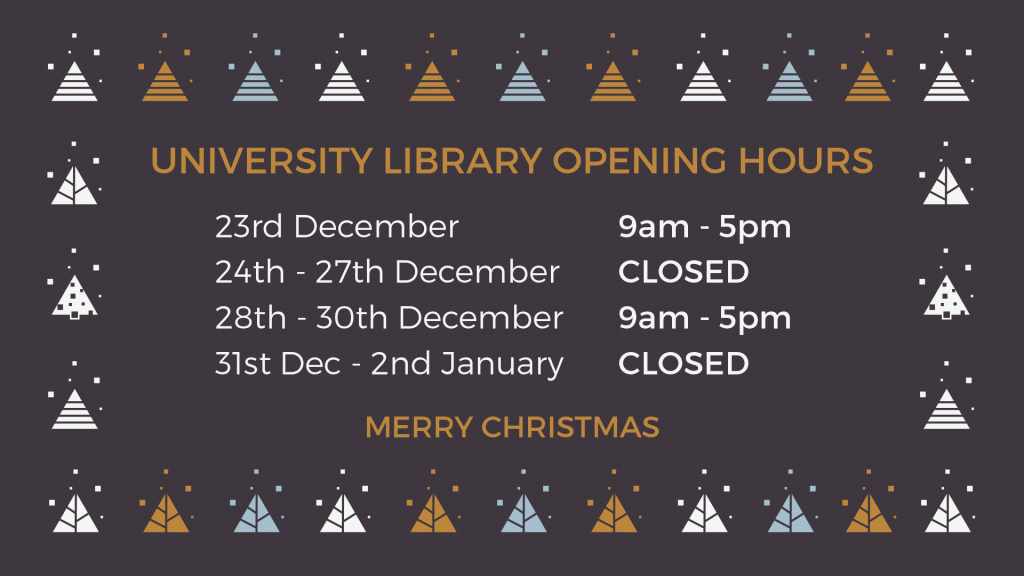 As much as we are all looking forward to the festive feasts (and post-feast naps) ahead I am sure many of you are not looking as forward to the approaching deadlines and revision…but fear not as the University Library will be open during the Christmas period so you can access all you need to succeed!