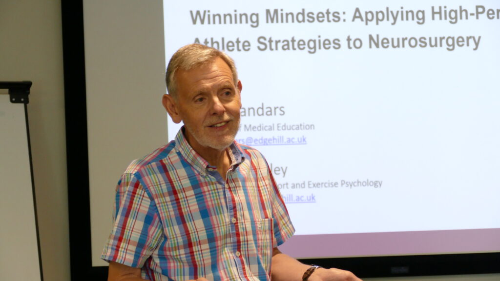 Throughout the two-and-a-half-day course, the programme covered topics including human factors, medico-legal aspects, cranial and spinal complications, work-life balance and expectations of a registrar. Our psychology academics also contributed sessions: Dr Antonio Capozio delivered a session on decision-making; Professor John Sandars and Dr Emma Huntley delivered a session on winning mindsets, applying sport psychology techniques used with elite athletes in the clinical setting; and Dr Lee Hulbert-Williams led a session on personality, coping styles, and stress.